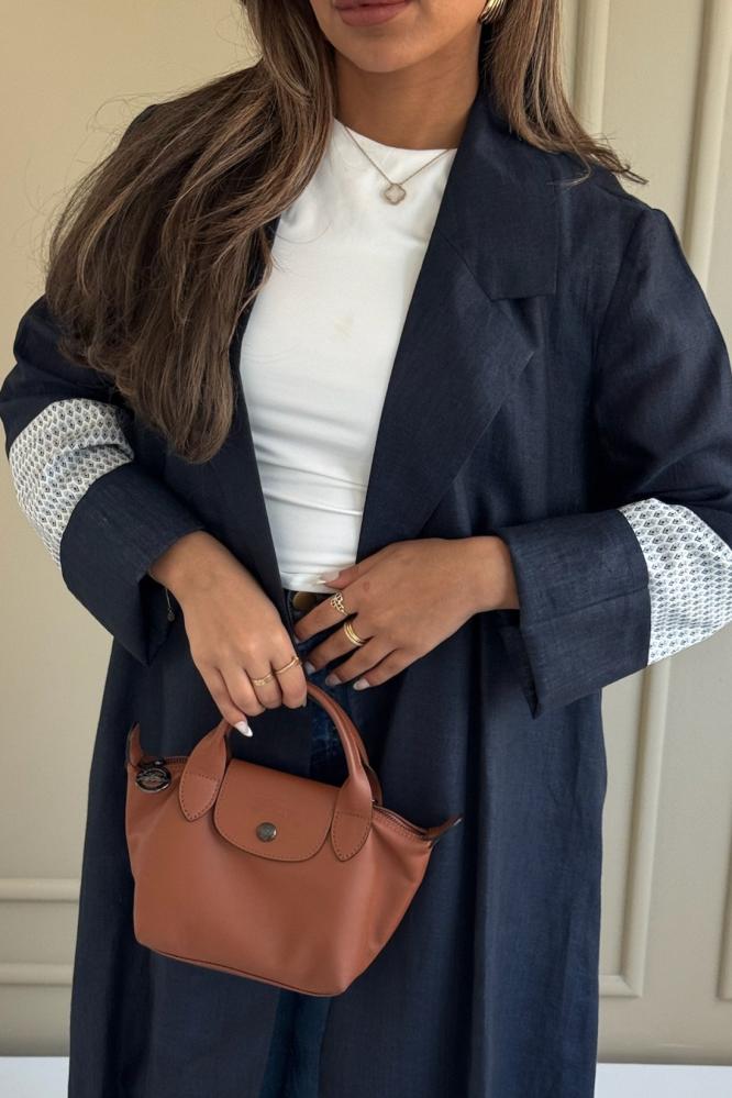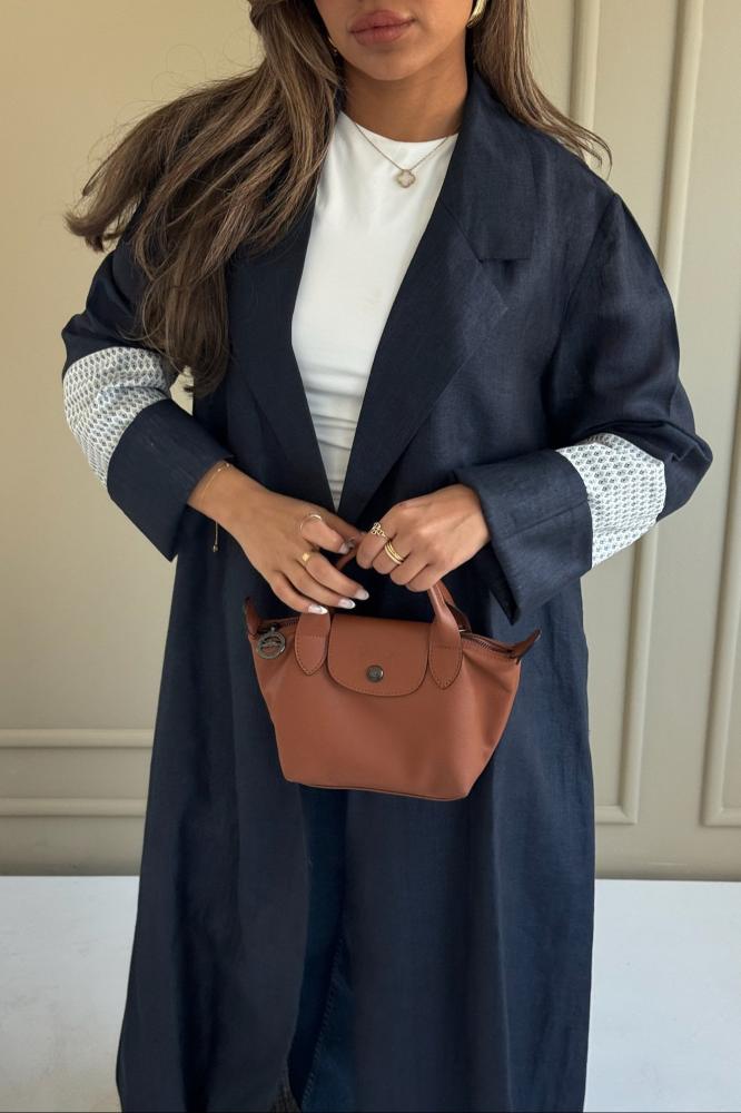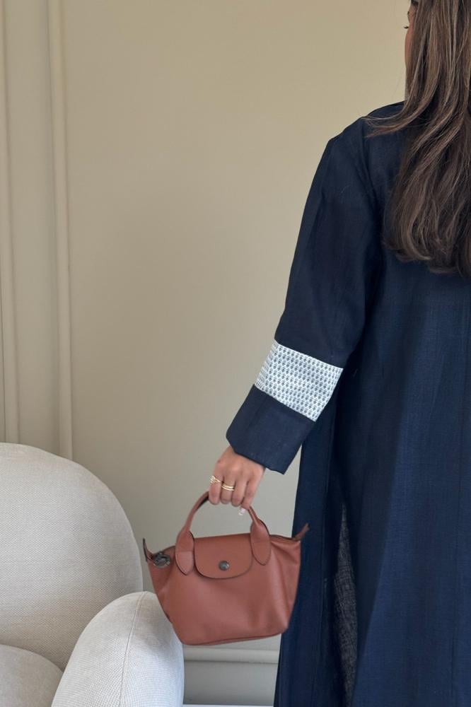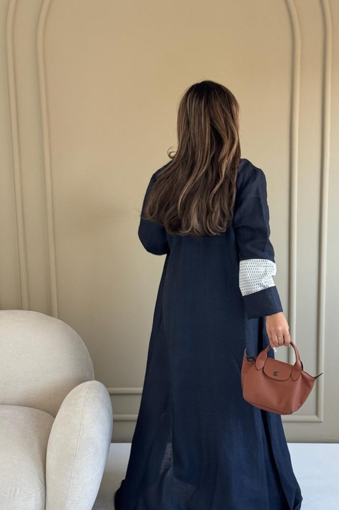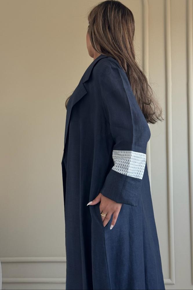 جاكيت عباية رسمي باللينين الإيطالي الفاخر مع جزء بسيط قطن ملون مع جيوب مخفية ، وطرحة رمادي فاتح