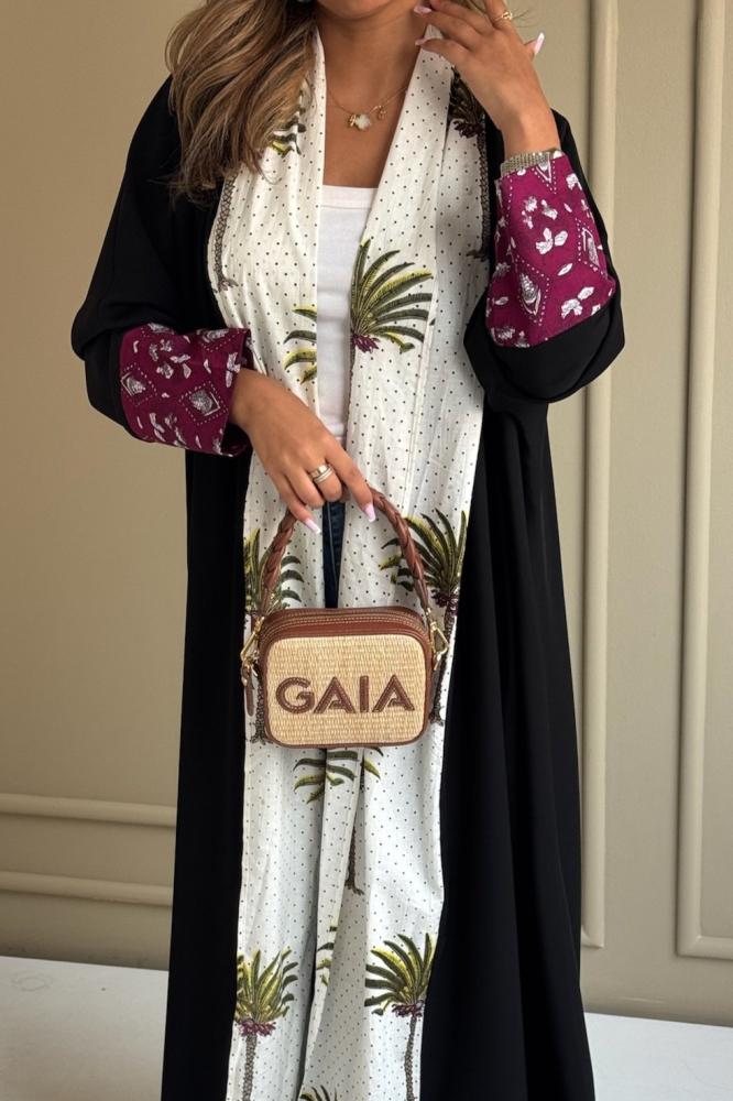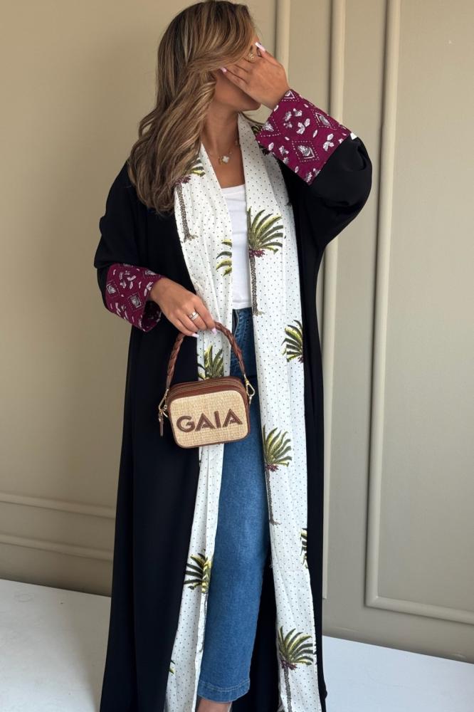 كريب ناعم اسود مع قطن ملون مع طرحة سودا بطرف ملون