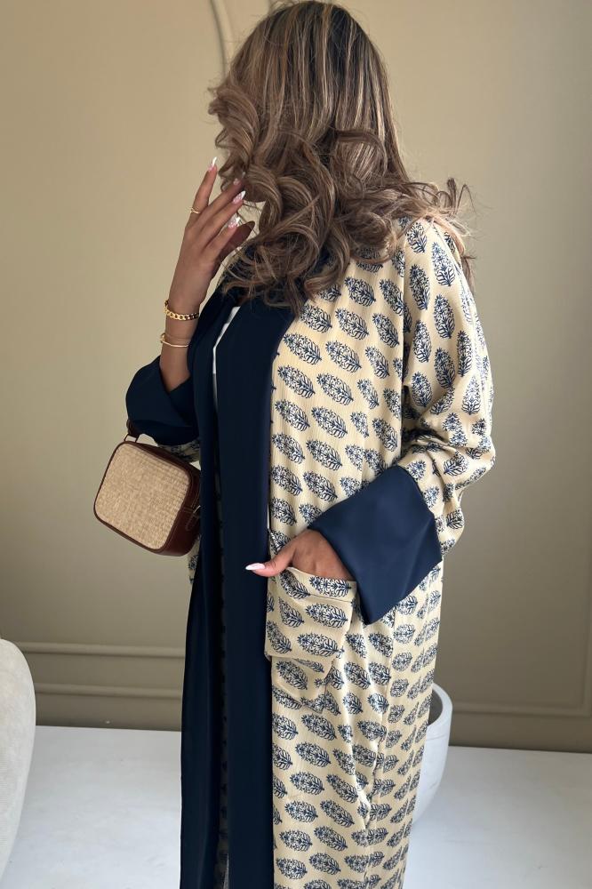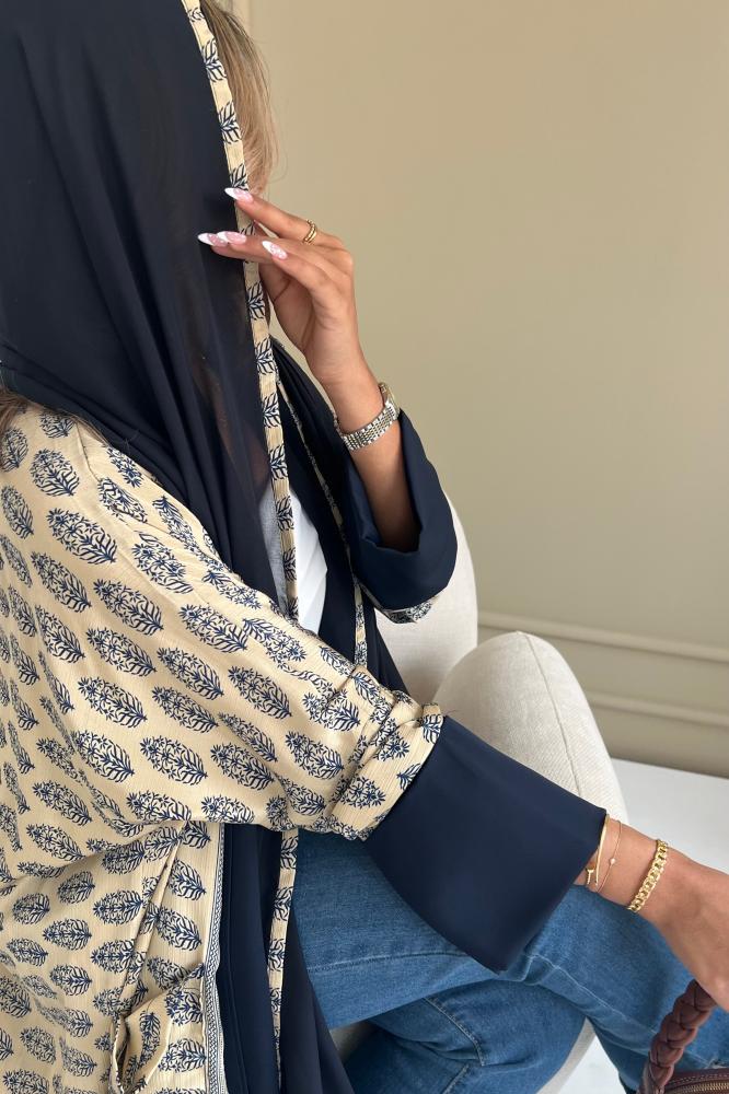 عباية حريرة ملون مع كريب ناعم في الأطراف وطرحة