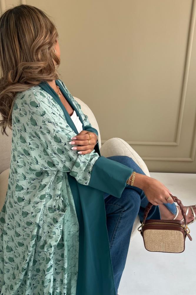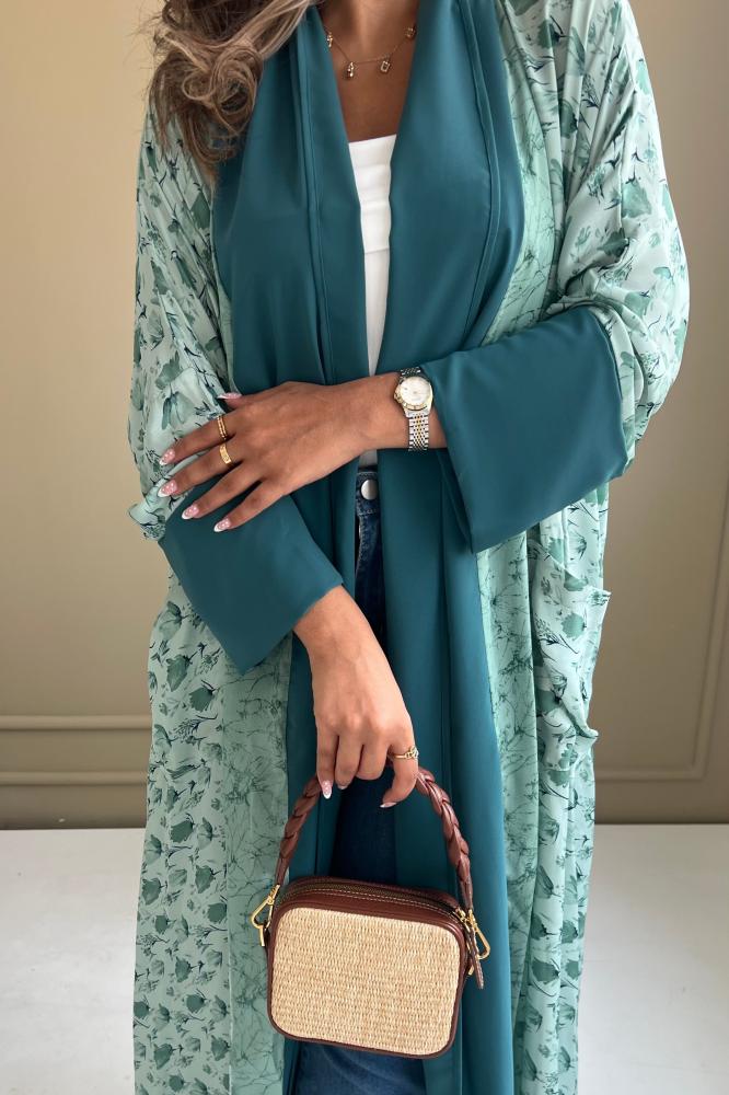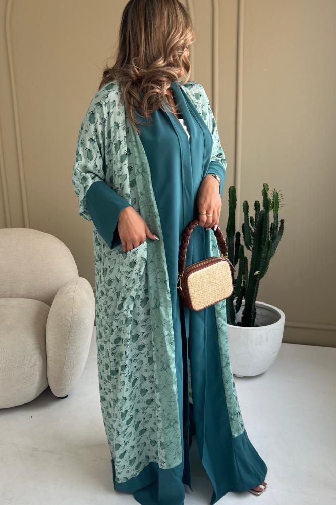 عباية حريرة ملون مع كريب ناعم في الأطراف وطرحة